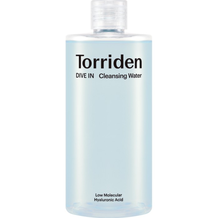 Torriden DIVE IN Low Molecular Hyaluronic Acid Cleansing Water är ett ansiktsvatten med en stabil blandning av emulsionspartiklar med både oljevänliga lipofila egenskaper och vattenvänliga hydrofila egenskaper. DIVE IN Cleansing Water avlägsnar varsamt smink och rengör huden. Den tar inte bara bort mineral-solkräm och smink, utan rengör även porerna.