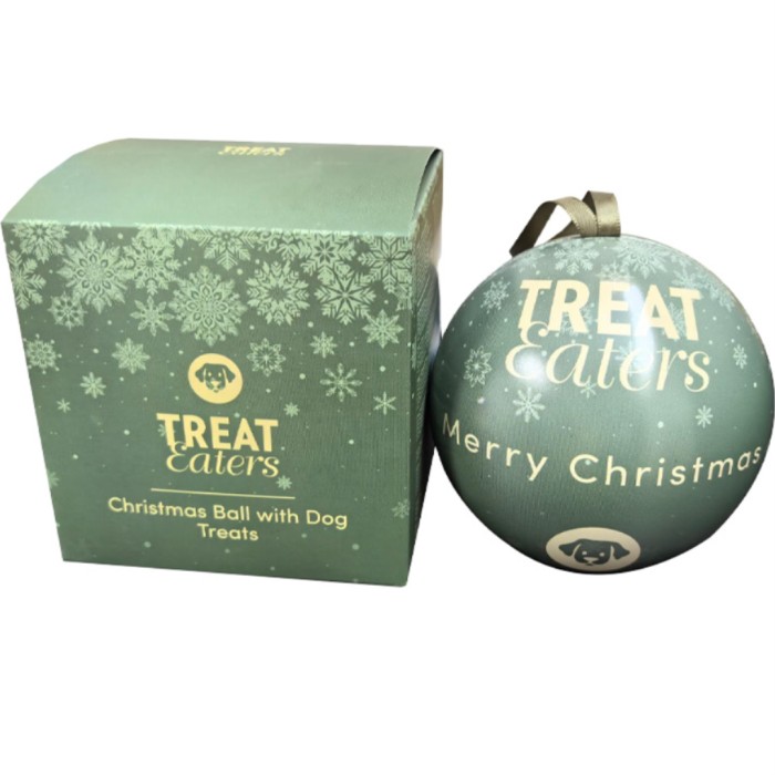 Treateaters Christmas Ball for Dogs är en julgranskula som gömmer en läcker överraskning till din hund. Inuti julkulan finns små godbitar med smak av kyckling, fisk och anka.