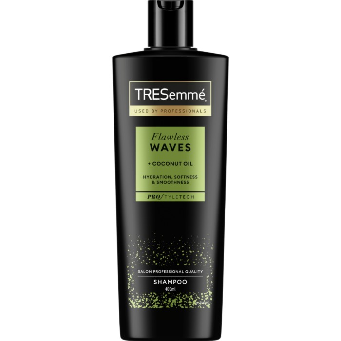 TRESemmé Shampoo Flawless Waves är ett schampo av professionell kvalitet som framhäver hårets naturliga textur. Kan användas till hår med mjuka vågor och studsande lockar, för ett vackert hår varje dag. Flawless Waves-kollektionen är framtagen med återfuktning i åtanke, och ger ditt hår den fukt det behöver för att tämja frissighet och lösa hårstrån och ge en polerad, definierad finish. TRESemmé Flawless Waves är fritt från silikoner och färgämnen och ger en skonsam rengöring.