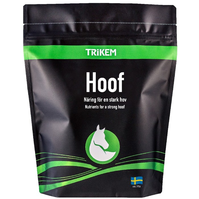 Dålig hovkvalitetet, som torra och spruckna hovar, kan bero på att hästen lider av en näringsbrist. Trikem Hoof innehåller ren näring till hoven och ger förutsättningar att öka hovtillväxten och bygga en stark och elastisk hov. Hoof innehåller näringsämnen som biotin, zink och aminosyror som ingår i hovens tillväxt.
