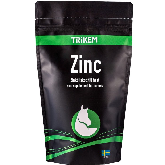 Trikem Zinc är ett zinktillskott till häst som kan användas vid zinkbrist eller hud- och hovproblem.