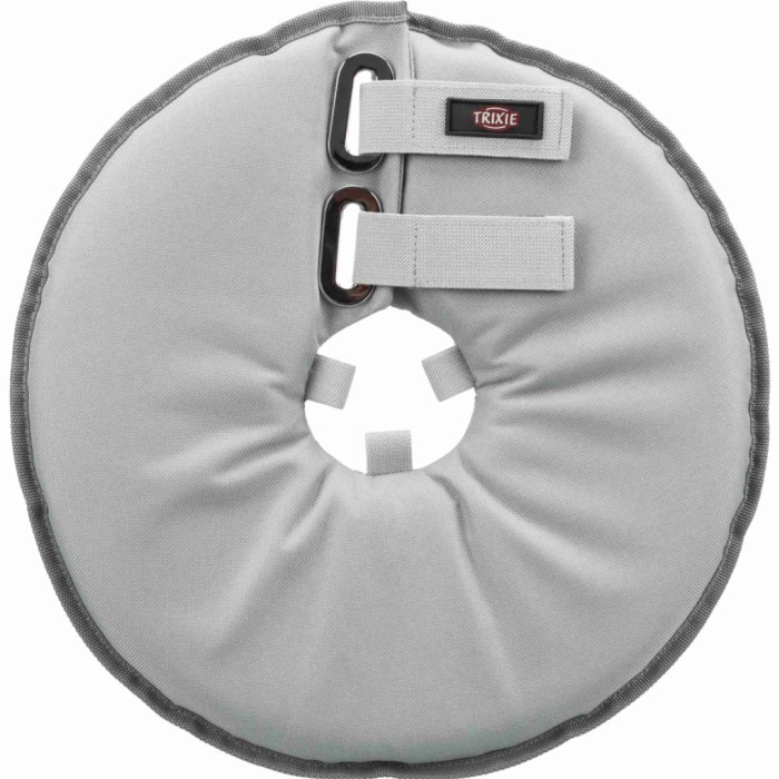 Med denna krage kan ditt husdjur fortsätta att se, höra, äta, dricka, leka och sova utan problem. Den är lätt att rengöra – torka bara av med en fuktig trasa. Kragen är försedd med öglor för att enkelt kunna fästas vid ett halsband, vilket gör den svårare att ta av.