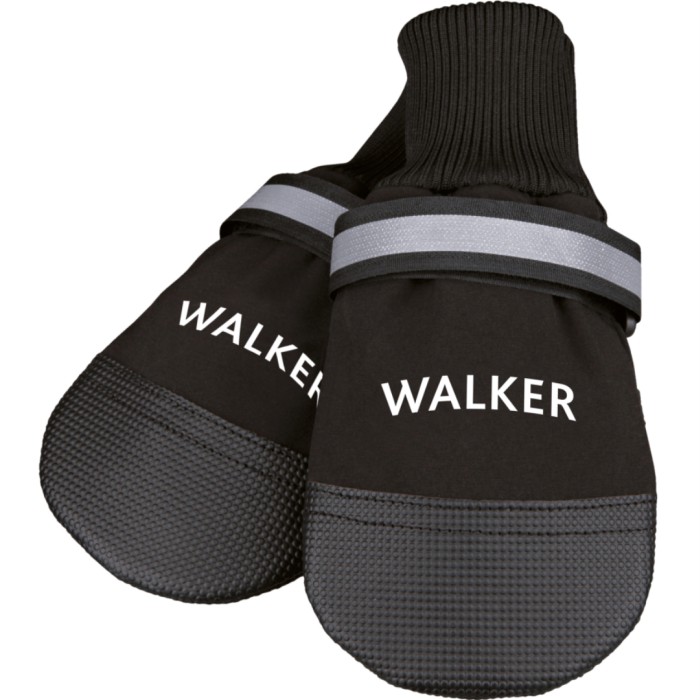 Walker Comfort är tillverkade av slitstark nylon, och har kardborre och reflexband. Skorna har en sula av vinyl med mjukt fleecefoder och muddar. Kan användas för snabbare läkning av skadade tassar. Förpackningen innehåller två stycken skor i svart.