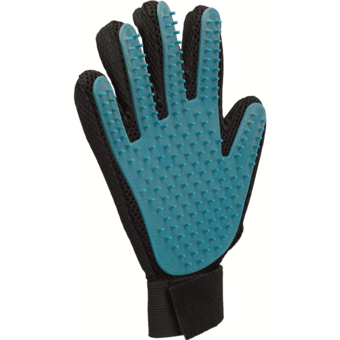 Trixie Pälsvårdshandske avlägsnar löst hår och damm från djurets päls. Kan ger pälsen glans och massera sällskapsdjurets hud. Handsken är tillverkad av ett luftigt nätmaterial som andas. Fästs med kardborreband runt handleden.