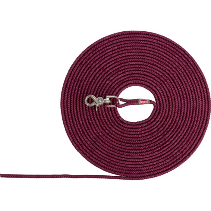 Trixies lätta spårlina i färgen sangria, 15 meter lång och med en diameter på 6 mm. Passar för små till medelstora hundar som tränar på längre avstånd. Idealisk för spårning och långdistans träning.