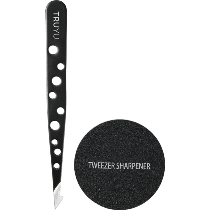 2 in 1 Tip Tweezers är en pincett med en tipp som är både snedställd och spetsig – nästan som två pincetter i ett och samma verktyg! Denna pincett har en bred form som ger ett stabilt grepp medan du enkelt formar ögonbryn eller plockar även de finaste stråna, utan att du behöver byta pincett. Det medföljande väss-verktyget ser till att din pincett alltid håller sig vass.