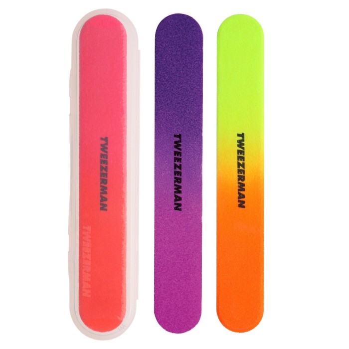 Tweezerman Neon Filemates är nagelfilar av en professionell och hög kvalitet som du kan lita på. Filemates-kitet innehåller allt du behöver för att få vackert formade naglar, med filar i tre neon-färger. Nagelfilen har två sidor, en grövre/medium sida (100 grit) och en finare sida (180 grit).