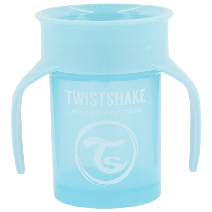 Twistshake 360 är en mugg för barn från 6 månader. Barnet kan dricka från alla sidor av muggen utan att spilla. Twistshake 360 barnmugg har en silikontätning på insidan som förseglas automatiskt när barnet slutar dricka.