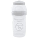 Twistshake Anti-Colic nappflaska är framtagen för att ge en behaglig matstund för dig och ditt barn. Nappflaskan har ett anti-kolik-system kallat TwistFlow med luftventil och ett mixernät. Hjälper till att motverka kolik med ett jämt flöde som förhindrar onödig luft från att nå barnets mage.