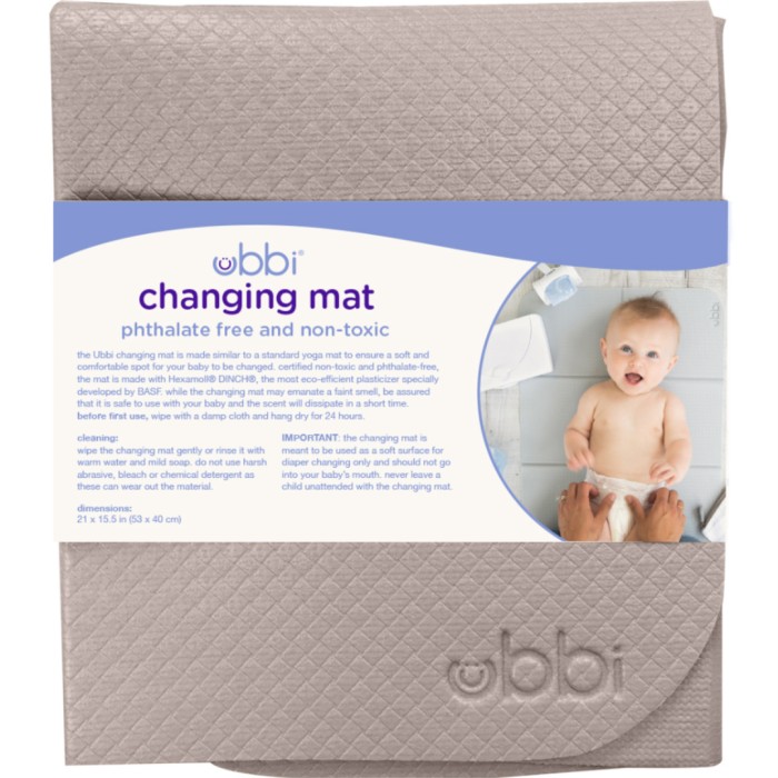 UBBI Skötunderlägg är en skötbädd gjord av plast och liknar en yogamatta. För bekväm användning när det är blöjbyte när ni är på språng.