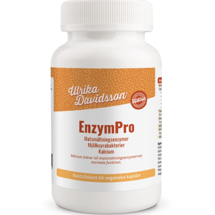 EnzymPro är ett kosttillskott som innehåller naturliga matsmältningsenzymer (DigeZyme®), mjölksyrabakterier (LactoSpore®) samt kalcium. EnzymPro innehåller Lactospore® som ger dig 600 miljoner sporfomade mjölksyrabakterier per dosering. Kalcium bidrar till matsmältningsenzymernas normala funktion.