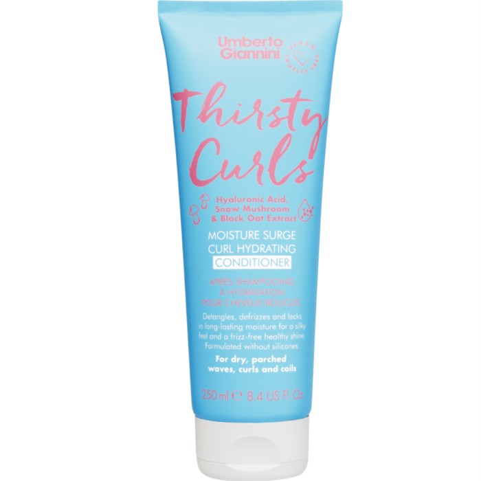 Thirsty Curls Conditioner från Umberto Giannini är ett törstsläckande balsam för torrt, lockigt hår. Ger ditt hår återfuktning för en mer hanterlig och frissfri finish. Ger håret upp till 72 timmars återfuktning*.(*Oberoende konsumenttest) Reder ut håret, motverkar frissighet och ger fukt för en silkeslen känsla. Balsamet ger också håret en fin glans, och ger studsiga, intensiva och återfuktade lockar.