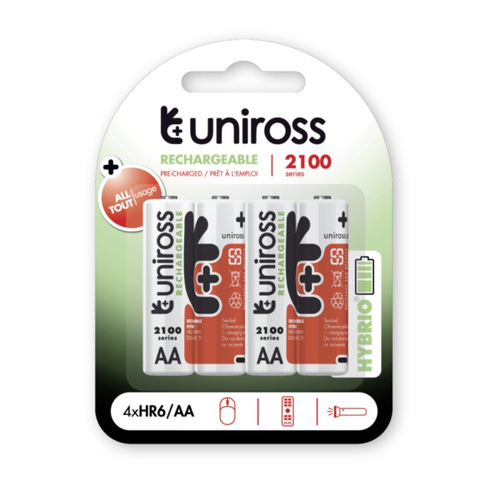 Uniross Laddbara batterier är färdiga att använda direkt från förpackningen. Batterierna är av modellen AA/LR06 och passar bra för strömkrävande produkter.