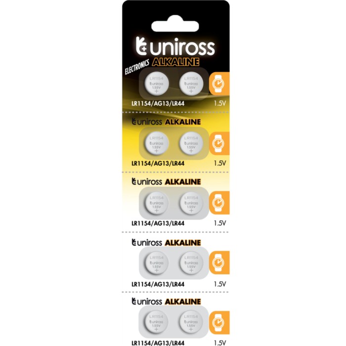 Uniross LR44 är alkaliska knappcellsbatterier från Uniross, som i över 50 år levererat kvalitets batterier över hela världen. Dessa batterier kan användas till elektronisk utrustning och även leksaker.