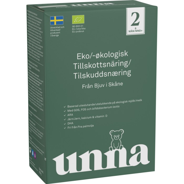 Unna Tillskottsnäring Steg 2 är en ekologisk tillskottsnäring tillverkad i Sverige. Unna Steg är baserad på ekologisk mjölk och är lämplig för barn över 6 månaders ålder. Tillskottsnäring kan användas som komplement till barnets alltmer varierade kost. Unna Steg 2 är anpassad för barn från 6 månader och innehåller lite mer järn än Unna Steg 1 för att tillgodose barnets behov. Unna är tillverkad i Bjuv i Skåne.
