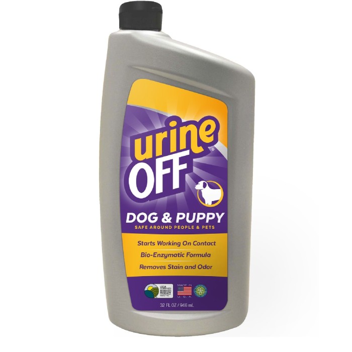 Urine Off är ett doft- och fläckborttagningsmedel som hjälper till att ta bort urinfläckar och doft efter hundar. Dog & Puppy Bullet används till mattor och andra mjuka underlag.