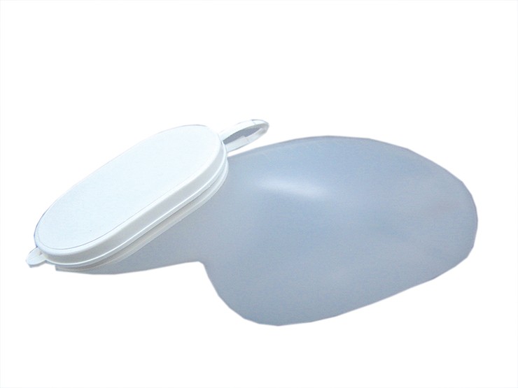 Urinflaska med lock för kvinnor. Tillverkad i plast och speciellt utformad för kvinnor.