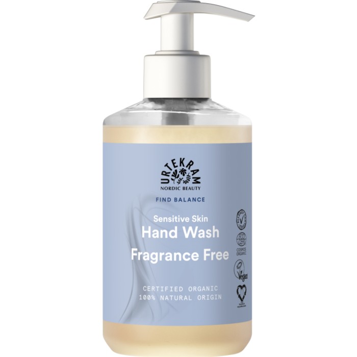 Urtekram Fragrance Free Hand Wash är en parfymfri handtvål som passar alla hudtyper, även känslig hud och dig som är känslig för dofter. Tvålen innehåller vårdande och återfuktande aloe vera som hjälper huden att behålla sin balans.