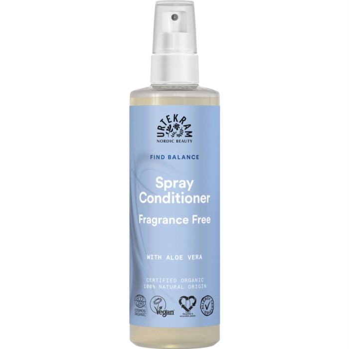 Urtekram Fragrance Free Spray Conditioner är ett naturligt leave-in balsamspray framtaget för att passa för känslig hårbotten. Balsamsprayen är formulerad med ett vårdande ämne från broccoli, fuktgivande aloe vera och glycerin som vårdar både hår och hårbotten. Den hjälper till att reda ut håret och gör håret smidigt, mjukt och lätt.