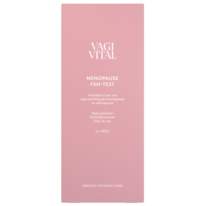 VagiVital Menopause FSH-test är ett självtest som med 94% träffsäkerhet indikerar hormonet FSH som är ett tecken på att du befinner dig i klimakteriet. VagiVital Menopause FSH-test är kliniskt bevisat och enkelt att använda.