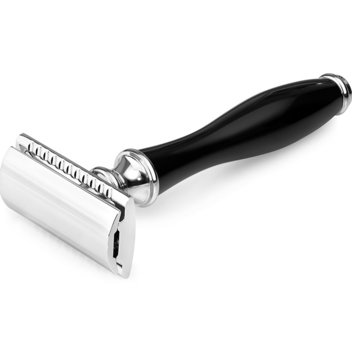 Váli säkerhetshyvel är av typen tre-delad säkerhetshyvel. Välbalanserad med kromat stål som ger en skön tyngd och känsla i hand under rakning där extra vikt har lagts på huvudet för lättare stråk. Tidlös design med handtag i svart ebenholtsimitation.