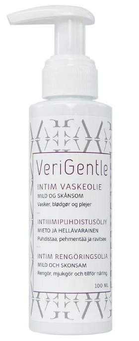 VeriGentle Intim rengöringsolja rengör och återfuktar huden i intimområdet. Oljan är mild och oparfymerad och är baserad på naturliga oljor. Återfuktar och gör att huden i intimområdet känns mjuk.