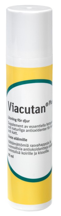 Viacutan Plus är en balanserad och koncentrerad blandning av Omega 6 och Omega 3-fettsyror som härrör från både växt-och fiskoljor. De Omega 6-fettsyror som finns i Viacutan Plus har en mycket hög halt av biologiskt aktiv gammalinolensyra (GLA), vilken är särskilt viktig för att upprätthålla en frisk hud. Viacutan Plus innehåller också olika naturliga antioxidanter som kan lindra inflammatoriska och allergiska hudreaktioner. Det ges som ett dagligt fodertillskott till hundar och katter för att stärka och vårda deras hud och päls.
