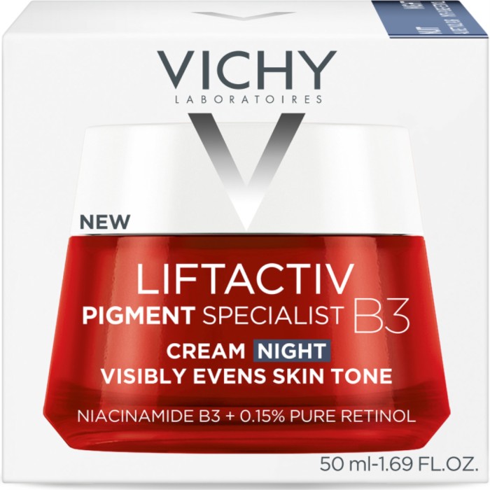 Vichy Liftactiv B3 Tone Correcting Night Cream är en effektiv nattkräm med anti-age-effekt och retinol. Nattkrämen motverkar effektivt ålderstecken och mörka fläckar under natten. Gör att huden känns fräsch och utvilad, och att hudtonen är mer enhetlig och får förnyad lyster. Liftactiv B3 Night Cream är effektiv mot alla typer av rynkor.