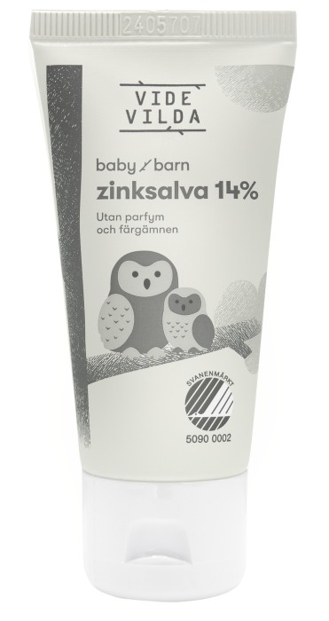 Vide Vilda Zinksalva är en vårdande och vattenavvisande zinksalva med 14% zinkoxid. Zinksalvan motverkar och lindrar röda babyrumpor och irriterad fuktutsatt hud. Salvan bildar en skyddande barriär och låter samtidigt huden andas. Salvan är vegansk och innehåller inte någon parfym eller färgämnen.