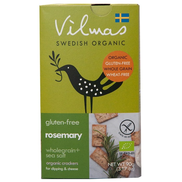 Vilmas rosmarin-knäckekex är svensktillverkade, glutenfria och ekologiska knäckekex. Knäcket bakas i Hofors och är en "klassiker" sedan 2006.