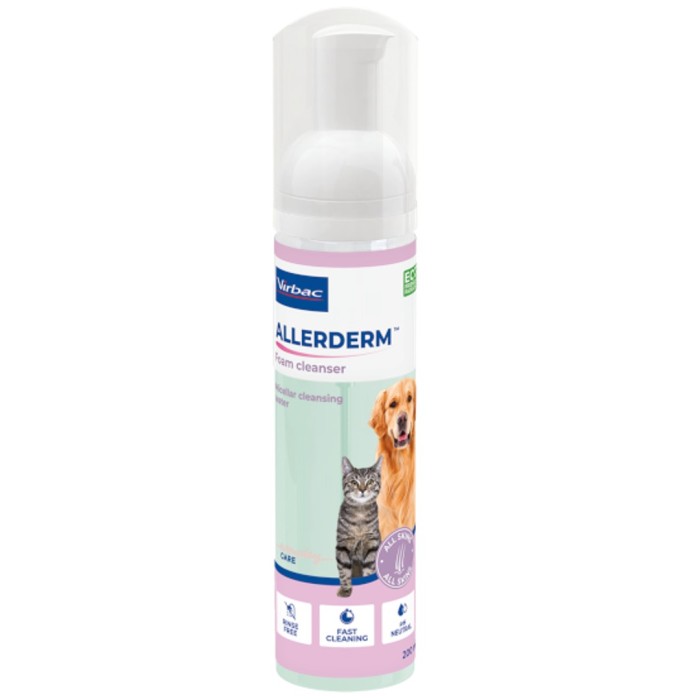 Virbac Allerderm Foam Cleanser är ett leave-in torrschampo i skumform för djur.