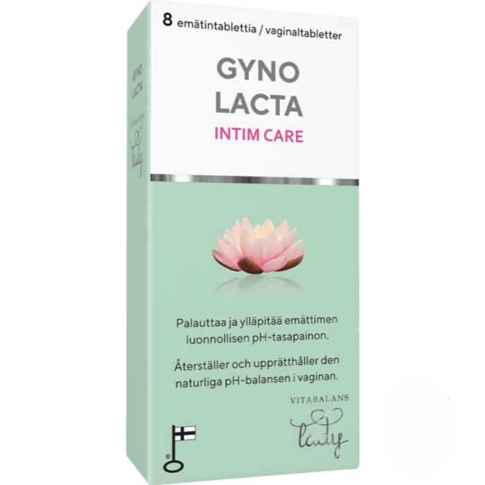 Gynolacta är en medicinteknisk produkt med CE-certifiering. Tillverkare: Vitabalans Oy