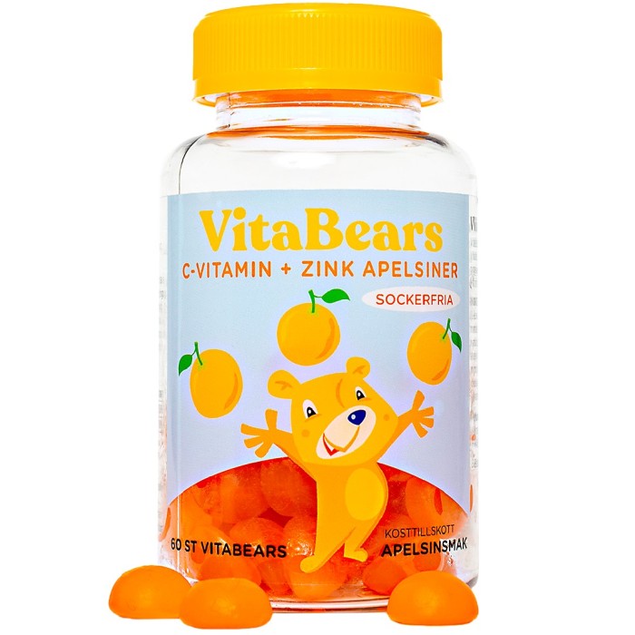 VitaBears kosttillskott med C-vitamin och zink från VitaBeaner. VitaBears är välsmakande apelsinbjörnar, där smak och färgämnen kommer från frukt och grönsaker.