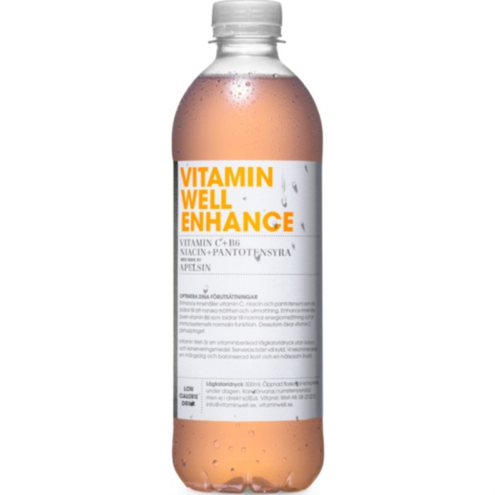 Vitamin Well Enhance är en funktionell dryck med vitaminer och mineraler och en smak av apelsin. Innehåller bland annat vitamin C, niacin, pantotensyra och grönt te-extrakt.