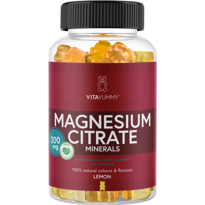 VitaYummy Magnesium Citrate är ett kosttillskott i form av vitaminbjörnar med smak av citron.