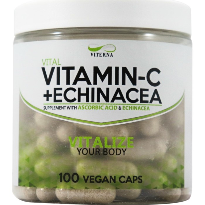 Viterna Vitamin C + Echinacea är ett kosttillskott i veganska kapslar. C-vitamin bidrar till immunsystemets normala funktion, normal bildning av kollagen samt bidrar till att skydda cellerna från oxidativ stress. Vitamin C bidrar också till att minska trötthet och utmatning. Detta kosttillskott innehåller även echinacea.