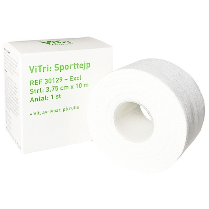 ViTri Sporttejp är en stark och oelastisk tejp med en blandning av bomulls- och viskostrådar och häftmassa av zinkoxid.