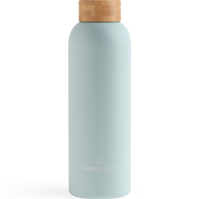 Waterdrop Bottle Steel turkos är en vattenflaska av stål som rymmer 600 ml. Denna flaska är tillverkad av robust dubbelväggigt rostfritt stål, som ger en effektiv vakuumisolering och håller ditt dryck kall i upp till 24 timmar, eller varm i upp till 12 timmar. Flaskan som rymmer 600 ml är 23 cm hög och 7,5 cm i diameter och väger 305 gram. Flaskan har ett lock tillverkat av bambu.