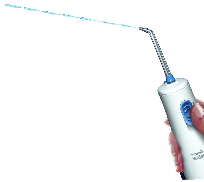 Med Waterpik mundusch gör du rent i tandmellanrum och tandköttsfickor. Vattenstrålen har en styrka som går att justera i två steg.