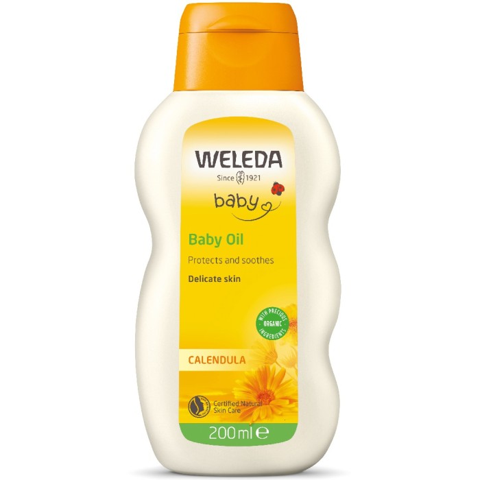Weleda Baby Calendula Body Oil är en mild babyolja som kan användas för daglig hudvård och vid babymassage. Calendula Body Oil motverkar uttorkning av huden och innehåller sesamfröolja och extrakt av ringblomma. Dermatologiskt testad.