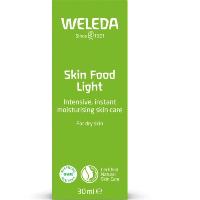 Weleda Skin Food Light är en lätt hudkräm som återfuktar huden direkt vid applicering. Skin Food Light har en lätt och smidig konsistens och går snabbt in i huden. Kan användas vid torr hud i ansiktet eller på kroppen.