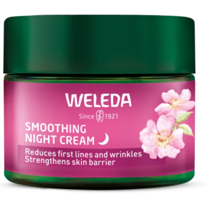 Weleda Smoothing Night Cream är en nattkräm som stödjer hudens reparationsprocess under natten och reducerar fina linjer och de första rynkorna. Weledas nattkräm innehåller nyponfröolja som, i kombination med vitt teblads-extrakt, verkar lystergivande och gör huden synbart slätare. Använd på kvällen för att vakna upp på morgonen med en hud som är återfuktad och full av naturlig lyster.