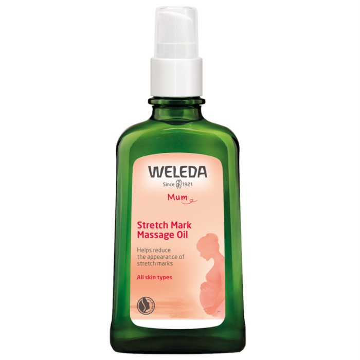 Weleda Stretch Mark Massage Oil är en naturlig massageolja som vårdar och mjukgör huden under hela graviditeten och förebygger bristningar. Stretch Mark Massage Oil innehåller mild sötmandelolja tillsammans med E-vitaminrik vetegroddsolja och extrakt av ekologisk arnika, som vid regelbunden massage minskar risken för bristningar. Hudens elasticitet förbättras och huden blir mjukare och smidigare.
