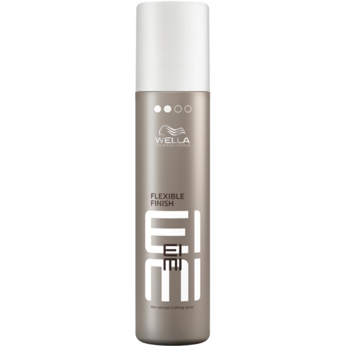 Wella Professionals EIMI Flexible Finish Hairspray hjälper dig att ge en lätt fixering åt frisyren. EIMI Flexible Finish hårspray är en professionell fixerande hårspray som gör det möjligt att skapa flexibla frisyrer utan att tynga ner håret. Wellas formspray utan aerosol ger skydd mot de negativa effekterna av värme och UV-strålar, samtidigt som det ger naturlig och formbar stadga åt håret.