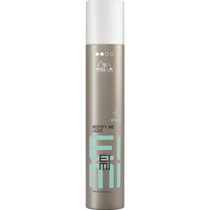 EIMI Mistify Me Light hårspray från Wella Professionals hjälper dig att forma en följsam frisyr. EIMI Mistify Me Light är en professionell hårspray framtagen för att hjälpa till att skydda håret mot de negativa effekterna från värme, fukt och UV-strålning.