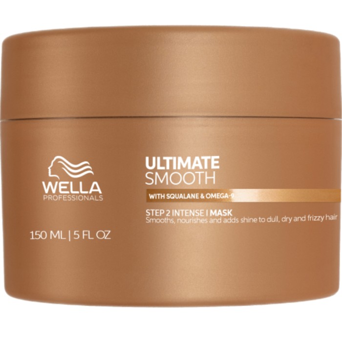 Wella Professionals Ultimate Smooth Hair Mask är en hårinpackning som slätar ut, ger glans och vårdar håret på djupet. Om den används i kombination med Miracle Oil Serum får håret näring på 30 sekunder, och en släthet som varar upp till 3 dagar*. Ultimate Smooth Hair Mask innehåller squalane och omega-9 för att ge håret näring på djupet och återuppbygga håret utifrån. Inpackningen är dermatologiskt testad och passar för färgat hår.