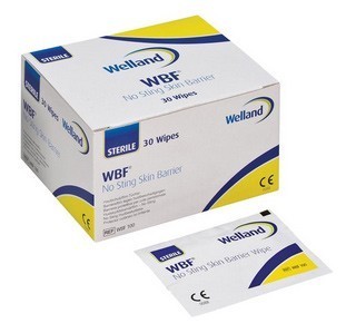 Welland WBF No Sting är en mindre våtservett (1,7 ml aktiv beståndsdel) och är tillräcklig för både skydd och borttagning av häftrester vid stomi. Våtservetten strykes på huden vid byte av stomi-häftplatta varigenom en skyddande hinna (barriärfilm) bildas. Samtidigt avlägsnas gamla häftrester från huden.