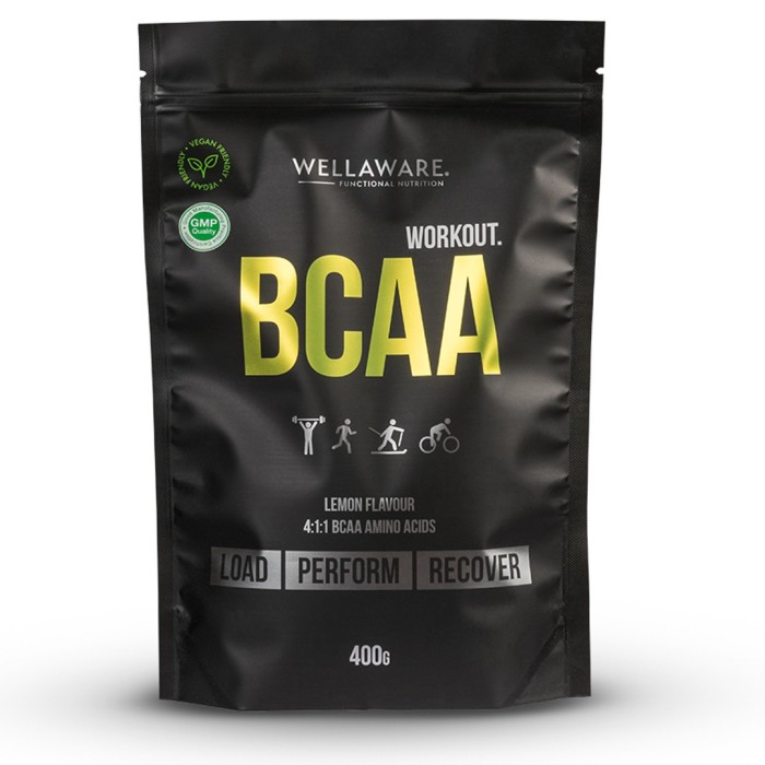 WellAware BCAA Lemon är ett kosttillskott som innehåller BCAA, Branched-Chain Amino Acids. Det betyder grenade aminosyror och innefattar L-leucin, L-isoleucin och L-valin. WellAwares BCAA innehåller dessutom L-glutamin och Aminomix (L-alanin, L-lysin och glycin).