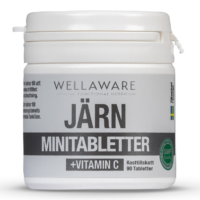 WellAware Järn & Vitamin C Minitabletter är ett kosttillskott i form av små tabletter. Järn bidrar till normal syretransport i kroppen. Vitamin C bidrar till immunsystemets normala funktion.