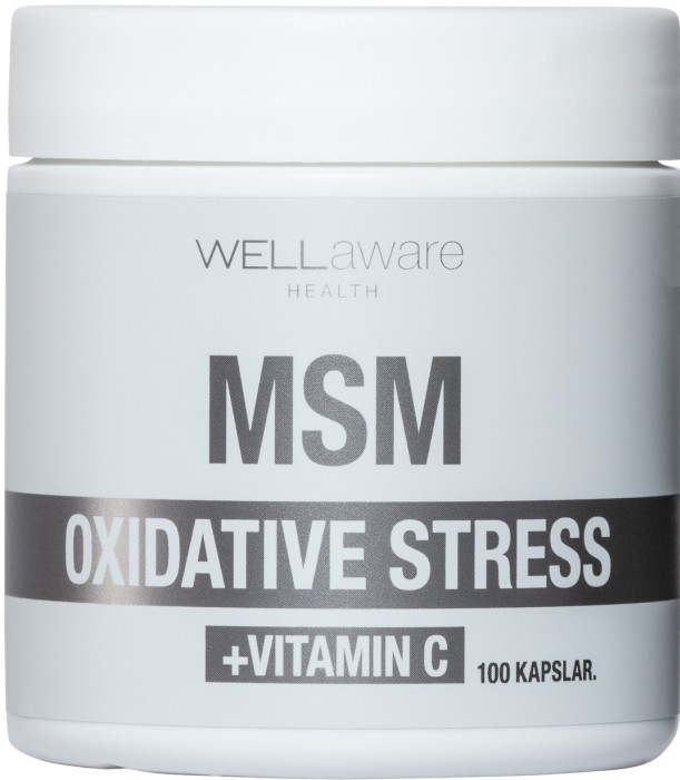 WellAware MSM + Vitamin C är ett kosttillskott i form av vegetabiliska minikapslar med MSM (metylsulfonylmetan) och C-vitamin.